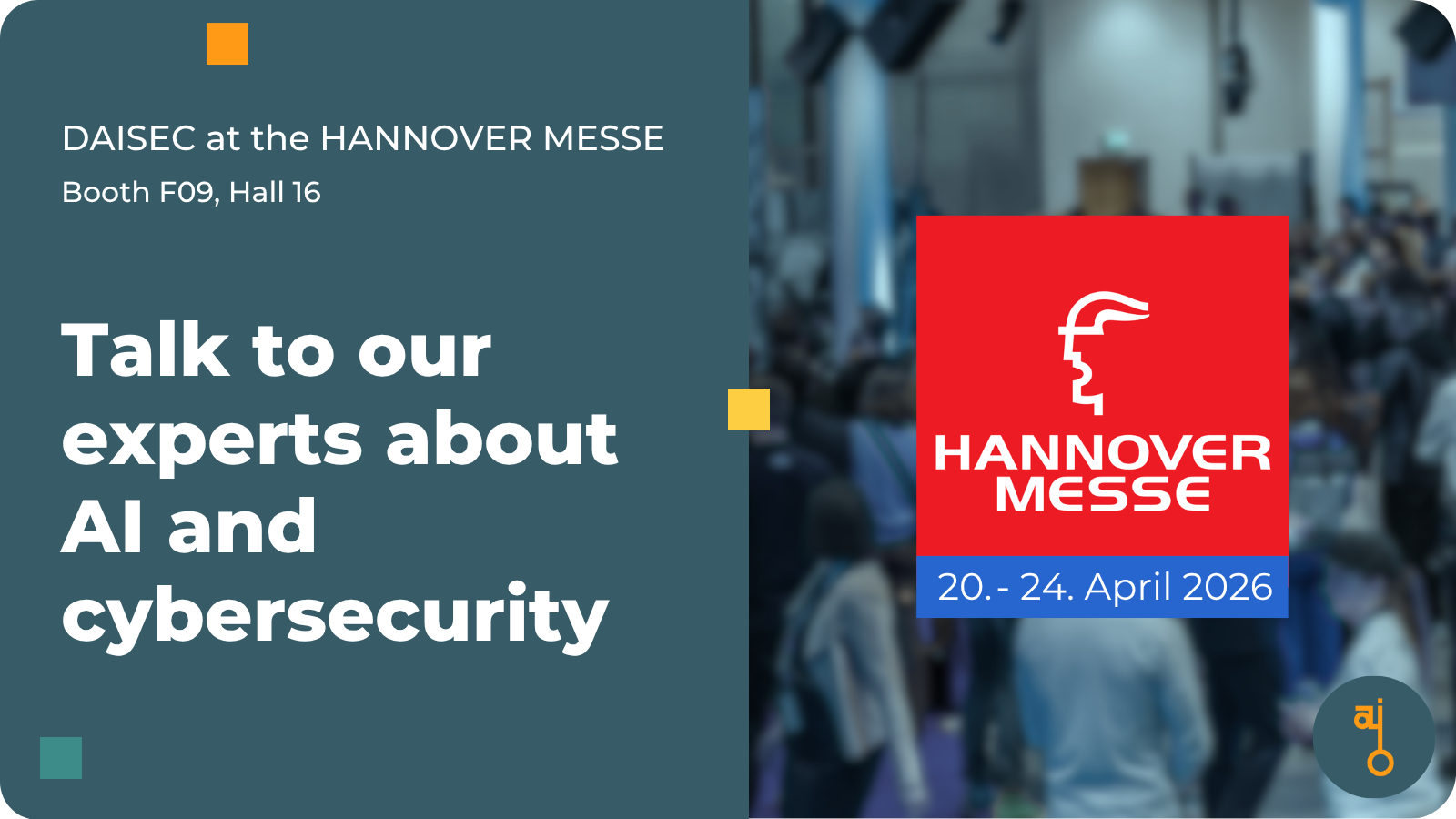 From 20 to 24 April 2026, DAISEC will once again be exhibiting at HANNOVER MESSE. As the world’s leading industrial trade fair, it provides a central platform for discussing innovations in the fields of digitalisation, artificial intelligence and cybersecurity.