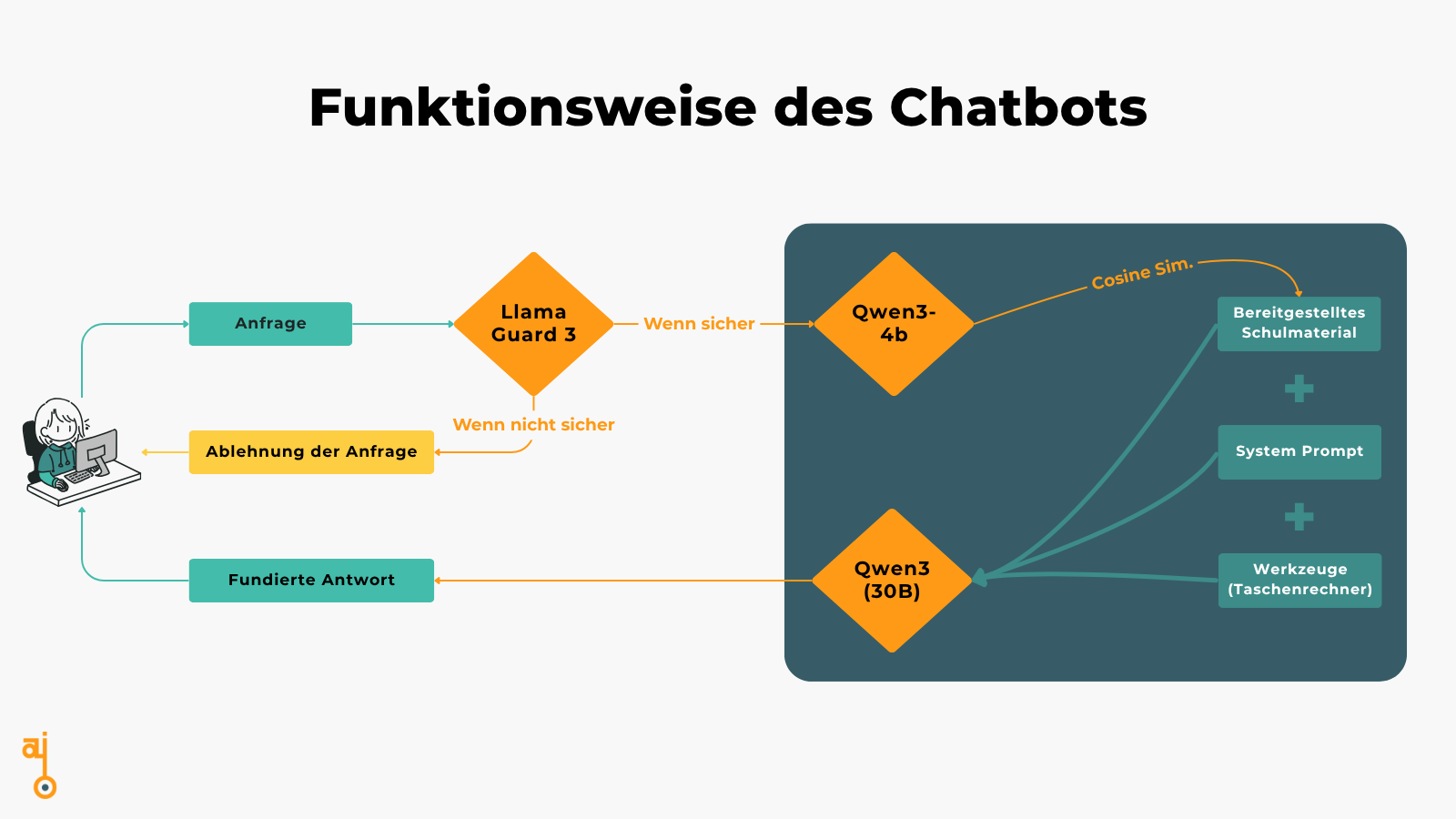 - Sprachmodell: Das zentrale Modell interagiert mit den Schüler*innen in natürlicher Sprache.